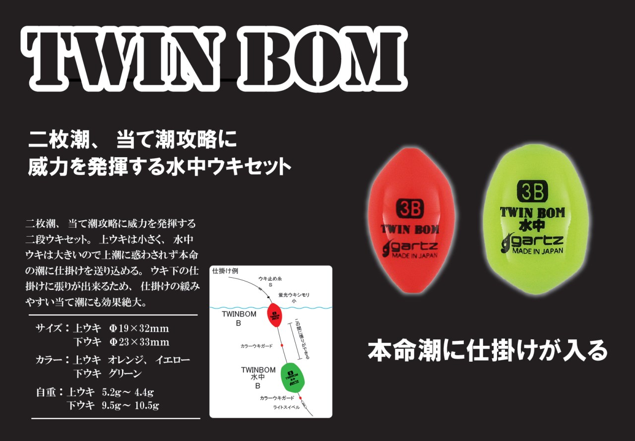 釣果アップに絶大な威力を発揮する2段ウキセット。 ツインボム追加規格登場! 上ウキは小さく、水中ウキは大きいので上潮に惑わされず、本命の潮に仕掛けを送り込む。ウキ下の仕掛けに張りが出来る為、細かいアタリも取ることができる。 仕掛けの緩みやすい当て潮にも効果絶大。